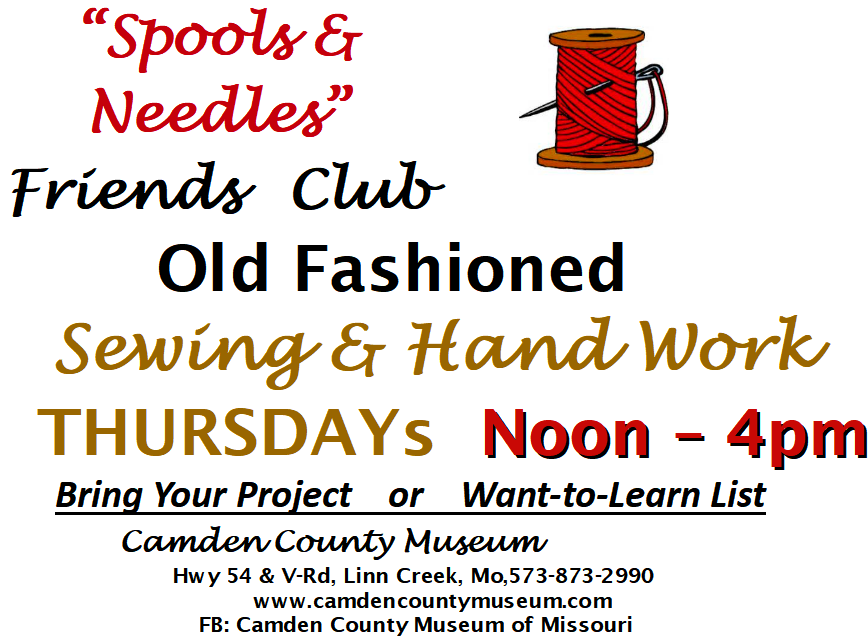 Meet any Thursday for an old-fashioned sewing bee and social time with like-minded folks. Bring the project you are working on or one you would like to learn. Also, bring a sack lunch if you wish.